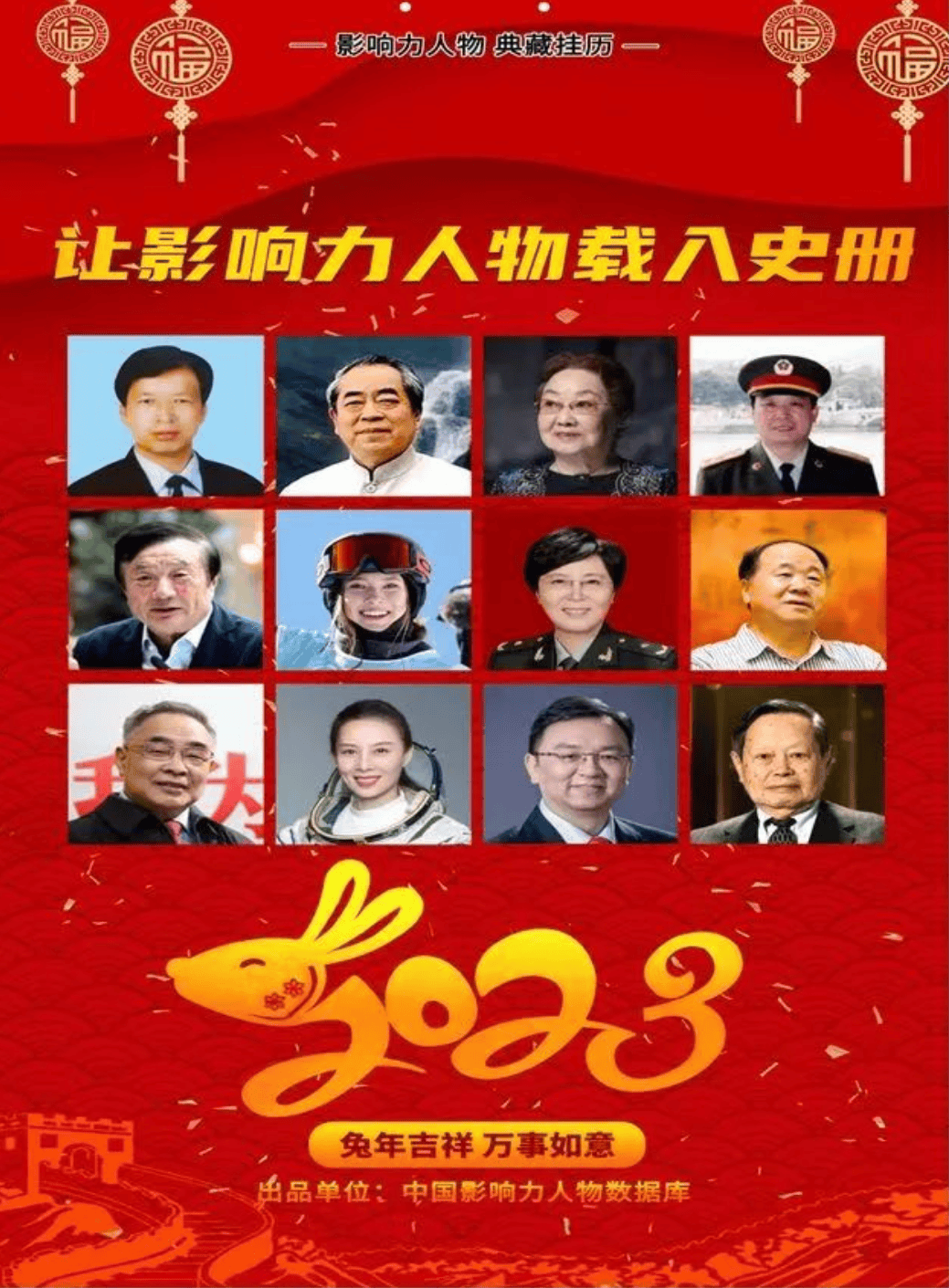 他入选国家纪念发行邮票名册、纪念辛亥革命100周年中华名人台历、庆祝共和国华诞60周年台历、纪念中国人民抗日战争胜利70周年倾力“中国梦”爱国人物周历和中国影响力人物年历。